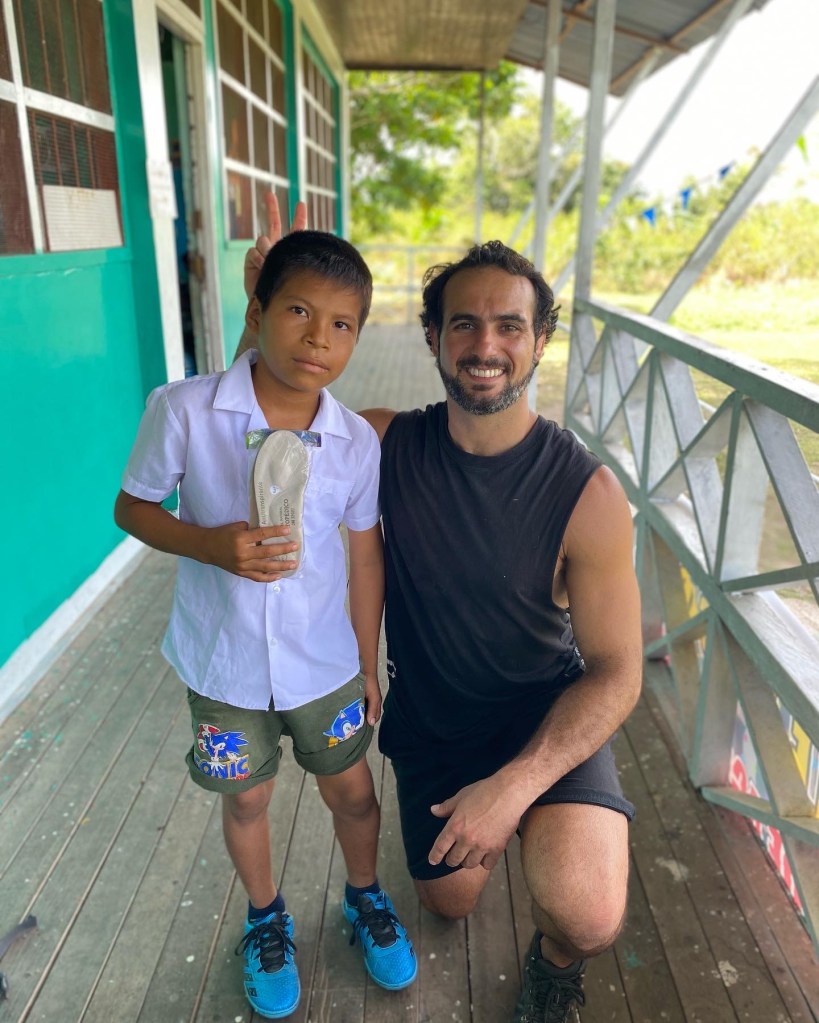 Donated shoes and lateral support for deformed foot. Irapuato, Mexico. January 2024