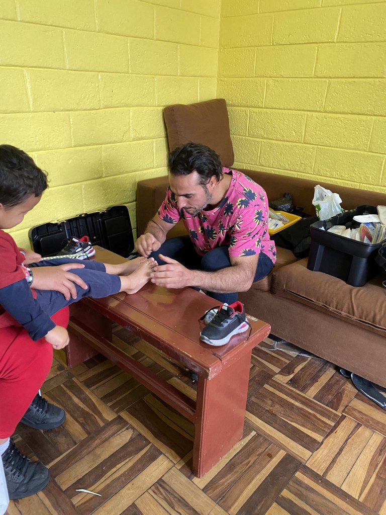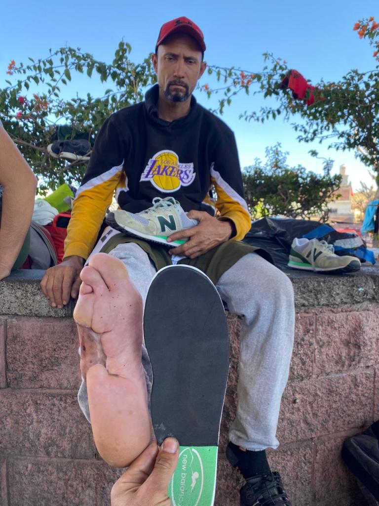Donated shoes and painful corns removed. Irapuato, Mexico. January 2024