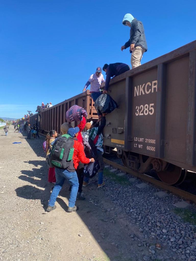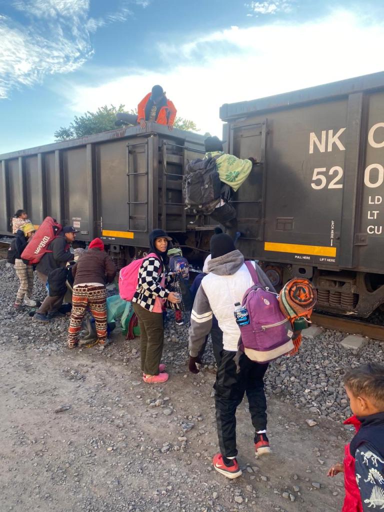 People climbing the train. Irapuato, Mexico. January 2024